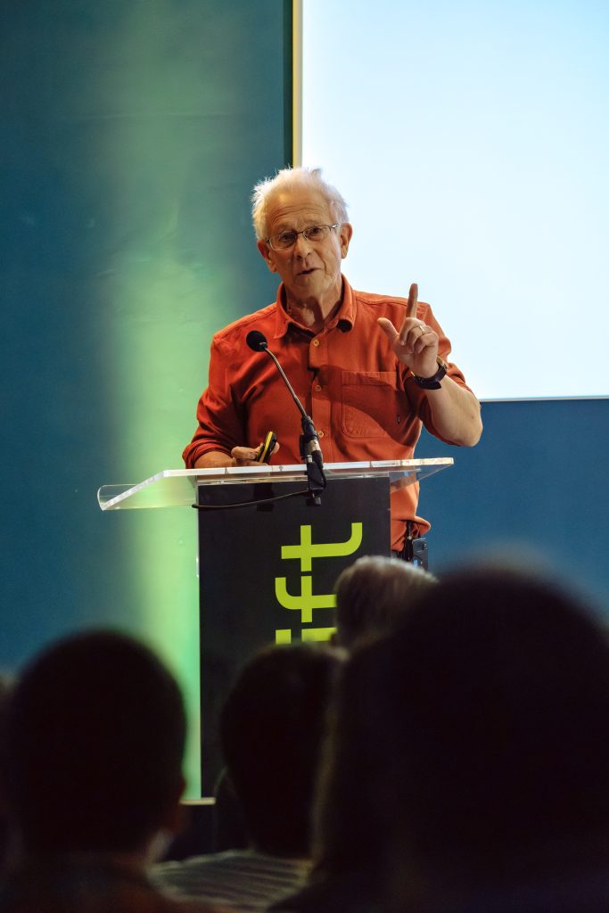 Next to take the stage was Chris Hines MBE, Founder of ‘A Grain of Sand’ and returning chair for _shift. This year, he took on an additional role, delivering the first talk of the day at the request of attendees from last year’s event who had wanted to hear more from him directly. In his talk, Hines reflected on the legacy of Surfers Against Sewage, the campaign group that fought for cleaner oceans in the 1990s. Hines alluded to the vast landscape of the climate crisis, citing research that shows 89% of people believe it is the most important issue their government should be doing more to address. Engaging and forthcoming with his opinions, Hines was a brilliant opening speaker, setting the tone for the day and planting early seeds for later discussions on policy.