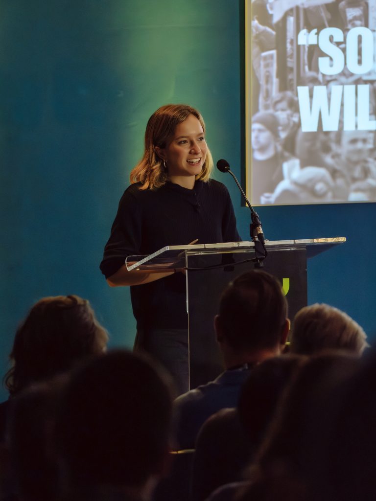 Next, Hines introduced _shift 2025’s first keynote speaker, climate activist Clover Hogan. Hogan was an exceptionally well-received headliner, known for her work on climate anxiety, her inclusion in the Forbes 30 Under 30 list, and her conversations with leading figures such as the late Jane Goodall, and Vandana Shiva. During her bespoke, reflective talk, titled The World We Build, she delved into the many nuances of tackling the climate crisis from within the built environment, sharing her unique perspective as an ‘outsider’ to the industry. Hogan encouraged designing for resilience, viewing the climate emergency as an opportunity for regeneration and a reawakening of possibility against a backdrop of political upheaval and environmental strain. Hogan’s ability to eloquently address complex climate issues and solutions, both in her presentation and the following question segment, impressed and invigorated the _shift audience.