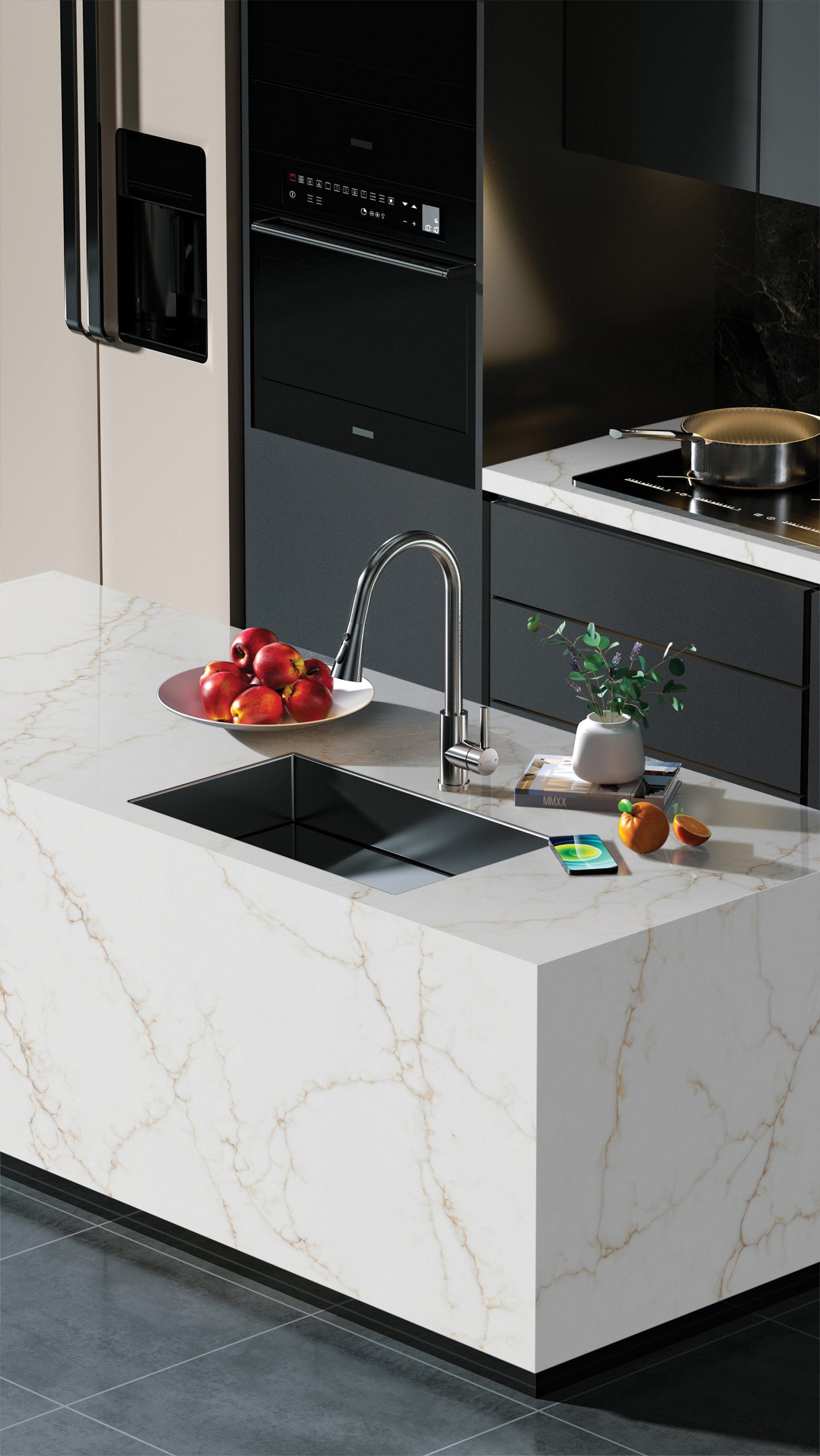 Ideal for use on kitchen worktops and islands, Statuario Oro is also perfect for bathroom furniture, flooring and wall cladding, providing designers with the creative freedom to utilise this exquisite quartz material in a variety of settings.